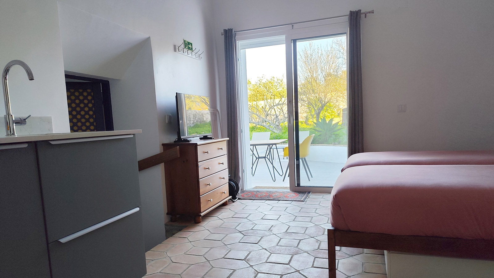 [NL] Aan de achterkant van onze quinta verhuren we een studio met een eigen privé terras. De studio is zelfvoorzienend met een volledig ingerichte keuken, een eigen badkamer en een ruime kamer met slaap- en zitgedeelte. Een goede ‘basis’ na een sprong in het zwembad en een bezoek aan de Portugese Algarve. Strand en zee liggen op 18 km afstand. Goed bereikbaar met fiets en auto. Meer informatie over de studio is te vinden op: